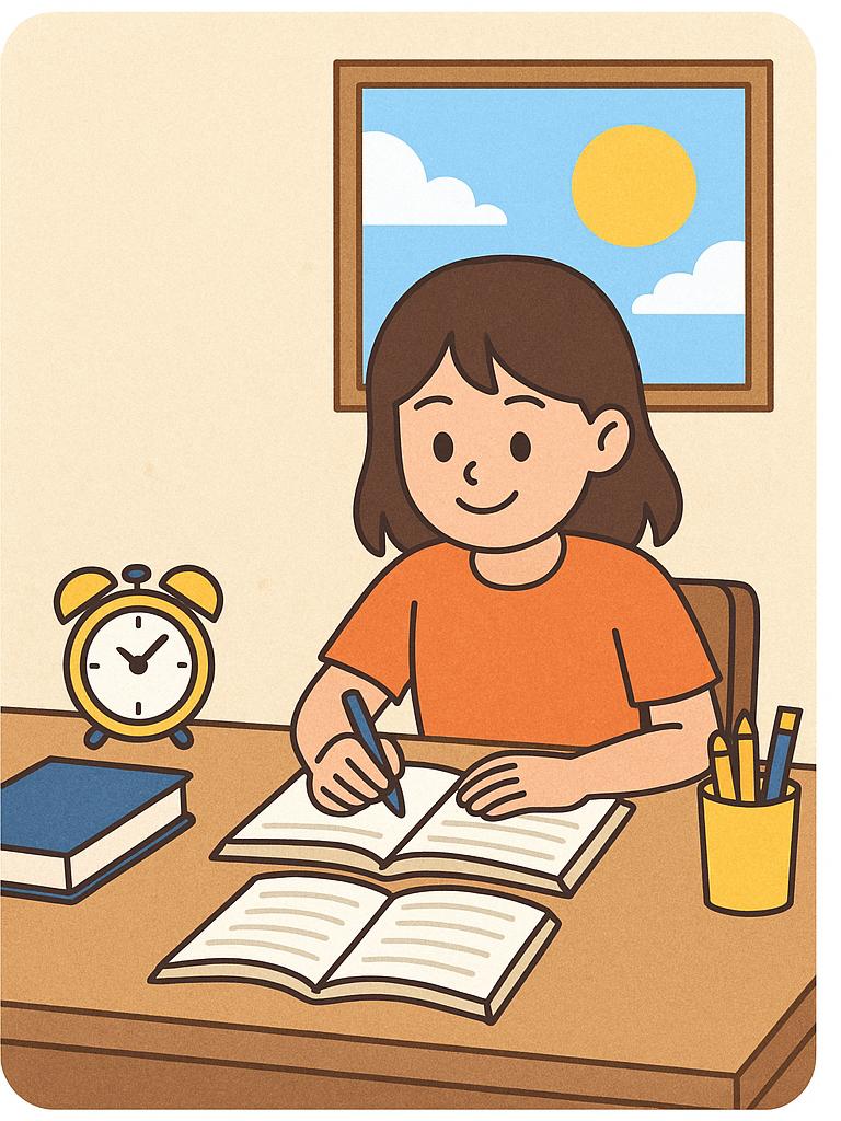 예를 들어, "오늘은 영어 단어 10개 외우기 → 엄마랑 마트 가기 → 강아지랑 산책하기 → 저녁에 독서 20분" 같은 식으로 정리해보는 거예요. 하루를 계획대로 보내면 성취감도 느낄 수 있답니다!