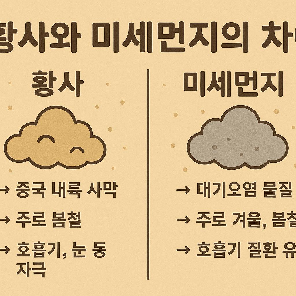 황사와 미세먼지는 유사해 보이지만 발생 원인과 성분, 건강에 미치는 영향에 있어 명확한 차이가 있어요. 황사는 중국과 몽골 지역의 사막에서 발생한 흙먼지가 바람을 타고 날아온 자연현상이며, 입자가 비교적 크고 광물성 성분이 많아요. 이는 철분, 칼슘, 실리콘, 알루미늄 등 다양한 광물질이 주성분이에요.